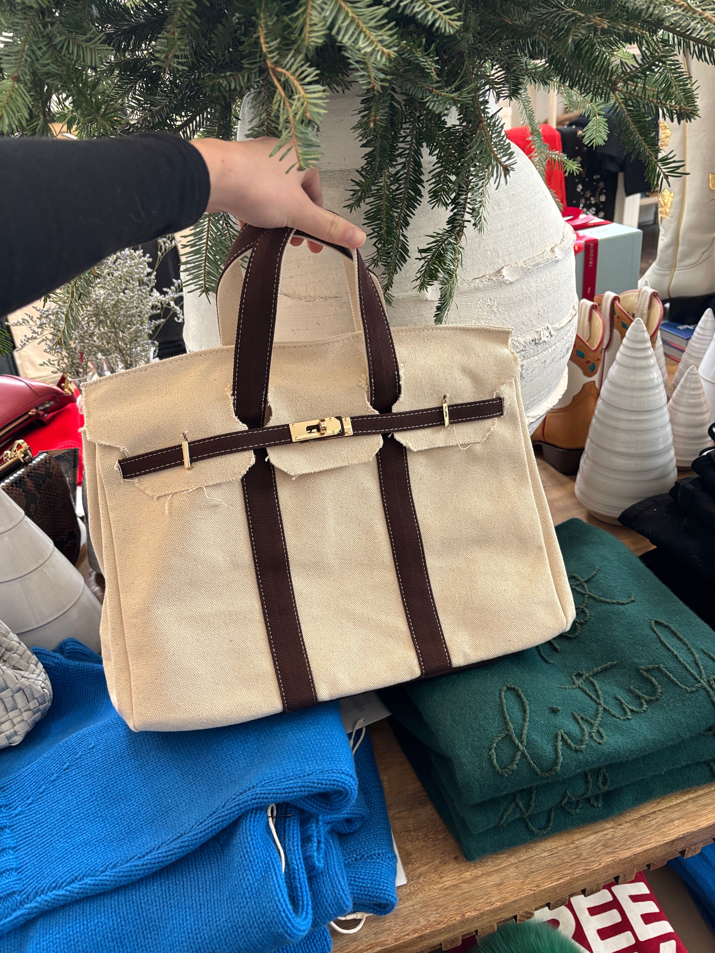 Perfect fun addition to your accessory closet! Cutest canvas tote with a fun shape!