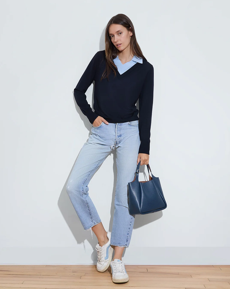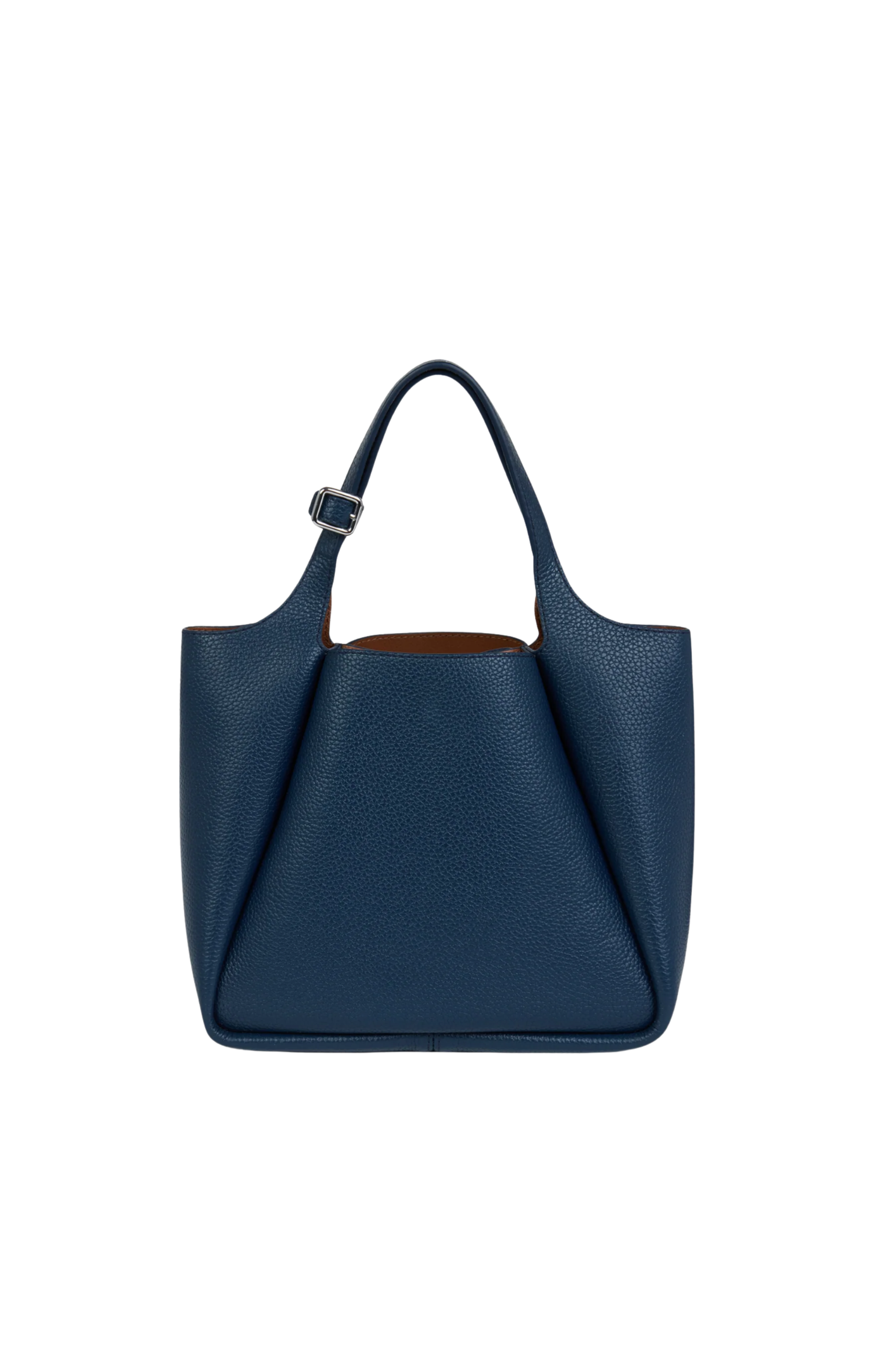 An architectural exploration of volume, this origami-inspired bucket bag features inward-folded leather that creates a striking, three-dimensional form. The design is anchored by a rounded square base and opens to reveal a triple-compartment interior backed with contrast leather. Elevated by silver-toned buckle hardware, a fixed top handle, and a detachable crossbody strap, it is a statement piece that prioritizes both movement and modern organization.