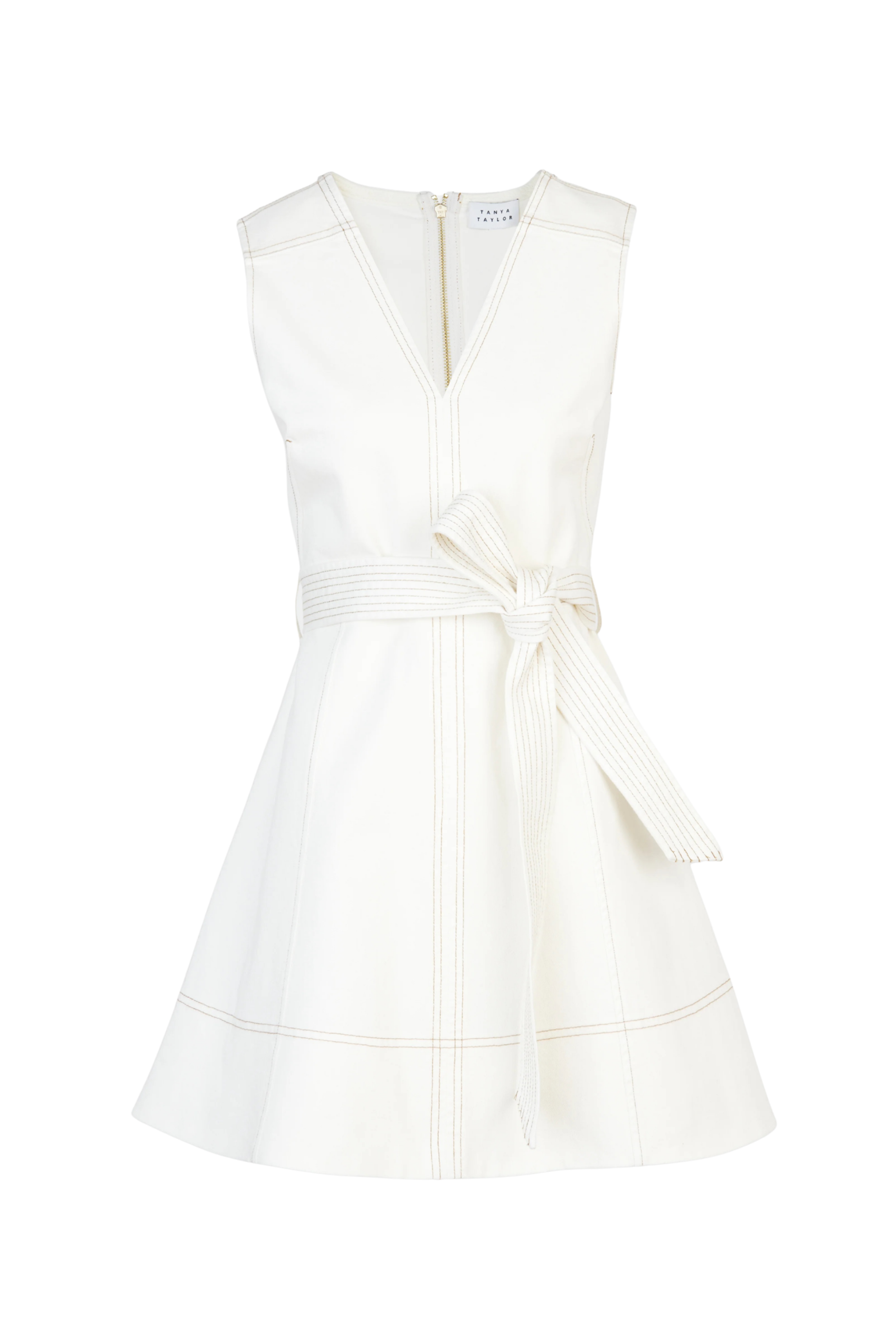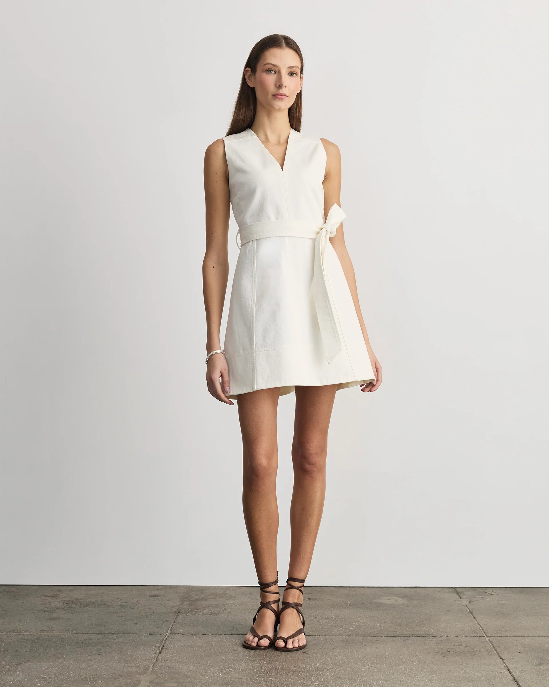 Featuring a versatile V-neck and a feminine A-line skirt with a self-tie belt, this effortless dress will be your new go-to for everyday ease and a timeless addition to any capsule closet.