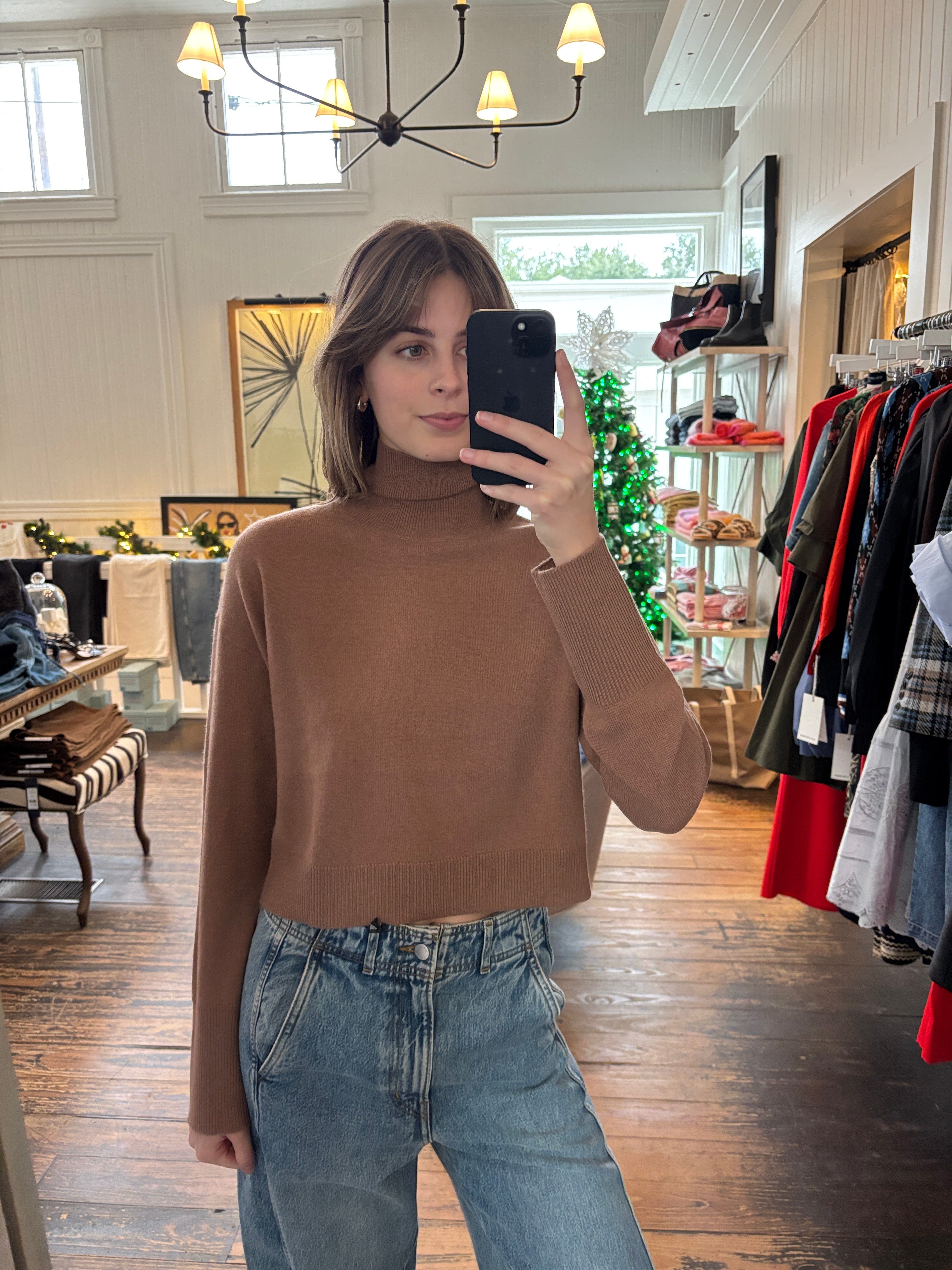 Cashmere turtleneck sweater featuring a lighter gauge jersey stitch.