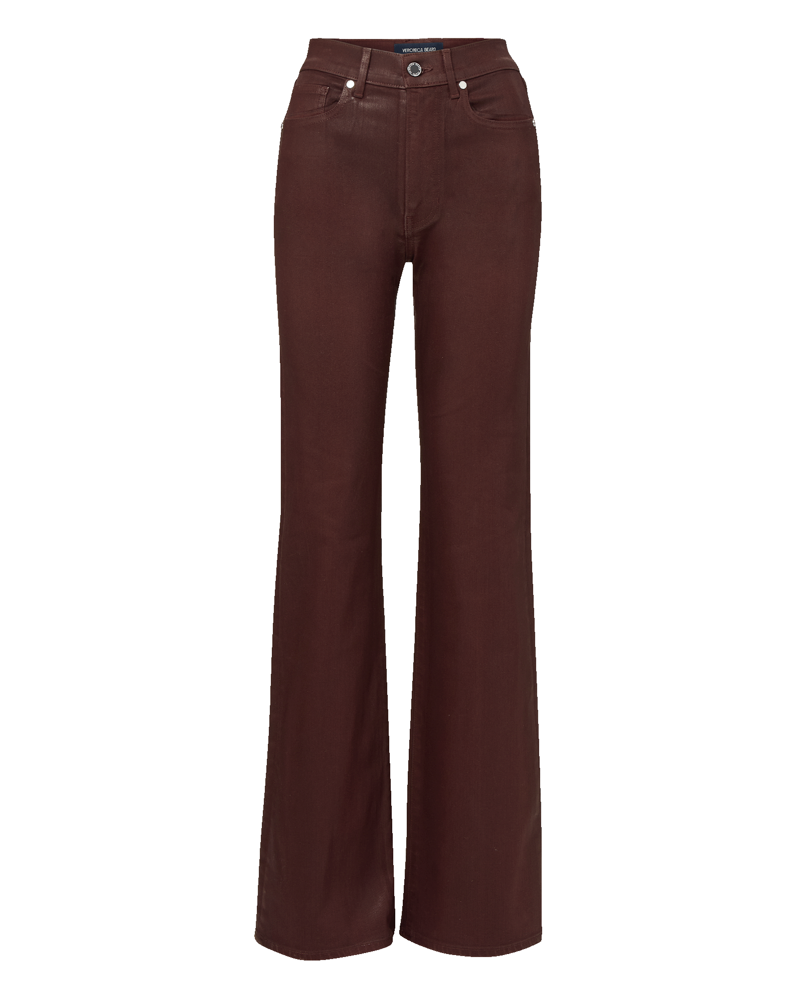 The Crosbie you know and love—now in a deep raisin burgundy wash, coated for a sleek sheen. Made in LA from super-stretch coated Japanese denim, this high-rise, slimmed-out wide-leg jean is fitted through the hips and thighs and expertly tailored for an elongating effect. Patch pockets and our signature V belt loops complete the look. For an elevated take on casual-chic, we love pairing it with a simple T-shirt and heels.