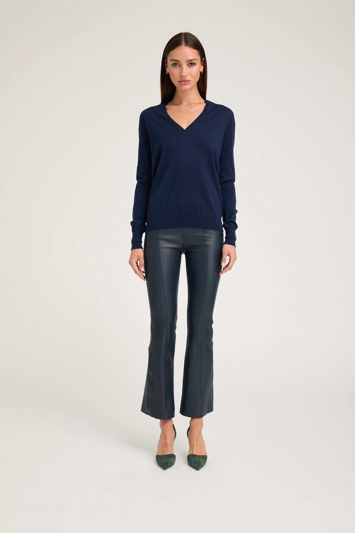 Leather Ankle Flare Pants Midnight