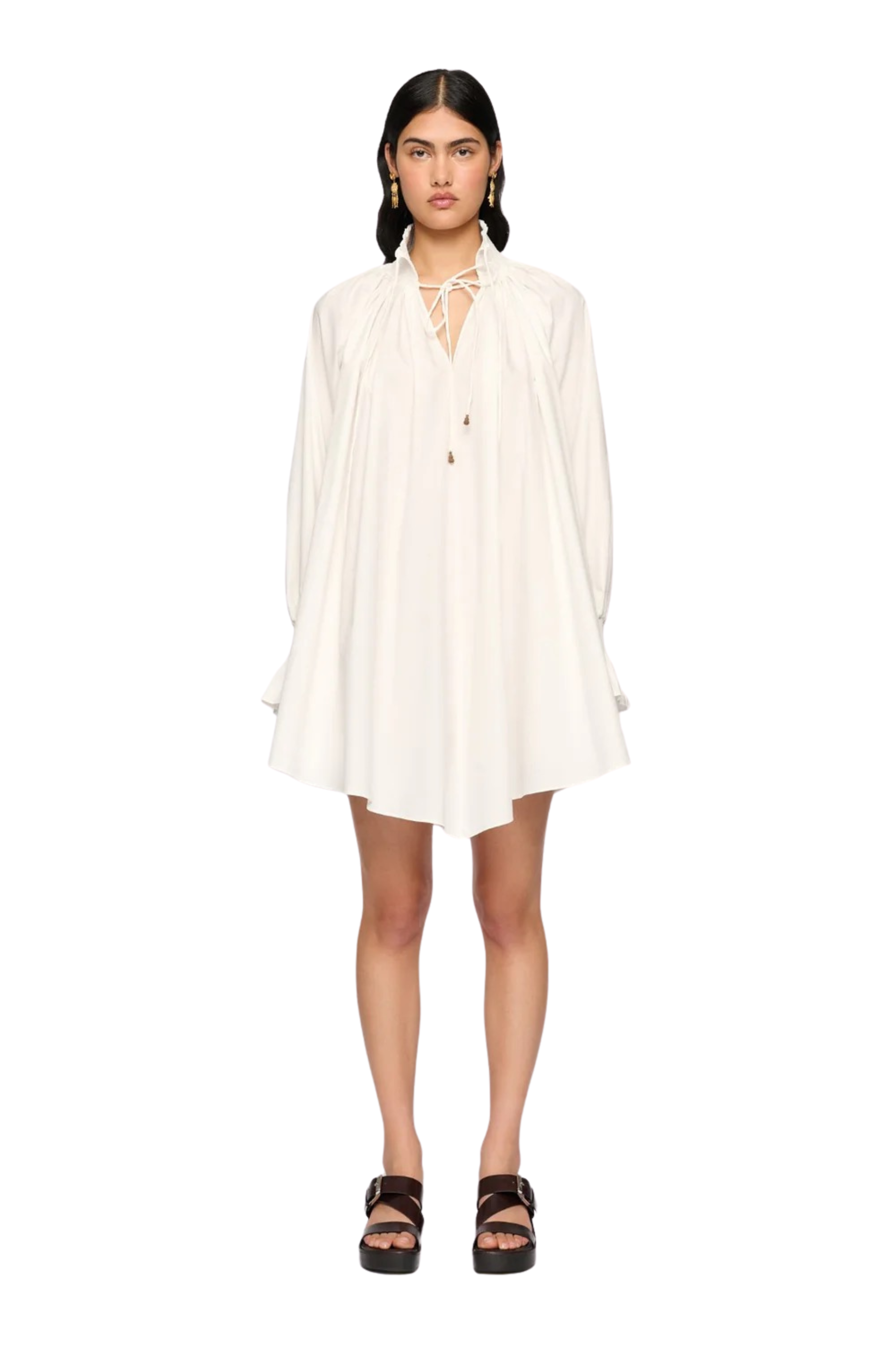 A voluminous silhouette with lightness and movement. The Isadora Mini Dress is crafted from a sheer, lustrous fabrication that drapes fluidly, creating a sense of air and ease.