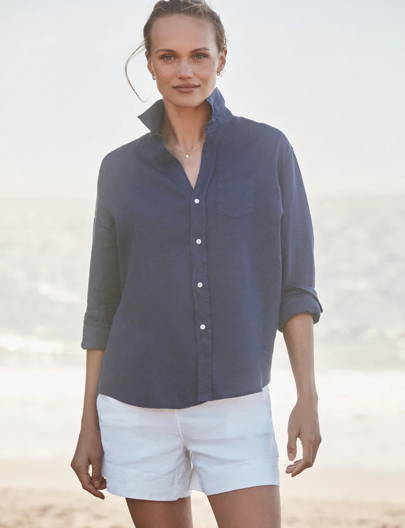 Eileen Button Up Navy Linen