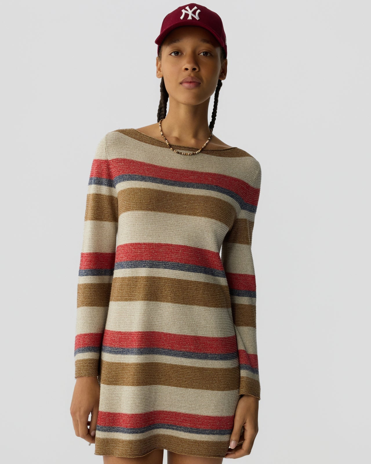 THE BAYSIDE MINI DRESS IS A LIGHT-WEIGHT LINEN–SILK STRIPE MINI DRESS DESIGNED FOR WARM-WEATHER EASE. FEATURING A BOAT NECKLINE, SOFT FLARED SLEEVES, AND A RELAXED SILHOUETTE, THIS BREATHABLE KNIT DRESS MOVES EFFORTLESSLY FROM BEACH DAYS TO SUNSET DINNERS. AN EASY THROW-ON FOR VACATIONS, COASTAL WEEKENDS, AND SUMMER GETAWAYS.