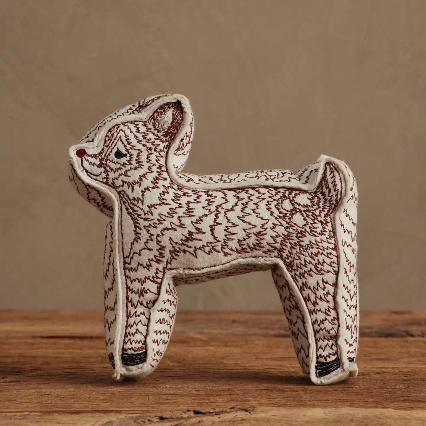 Let Rudolph’s red nose guide your holiday decor this season. Our unique Rudolph design can be a holiday tabletop decoration or a stocking stuffer. Embroidered on all sides, Rudolph stands up with a smile and his signature red nose. Measures 5" × 5" × 2".