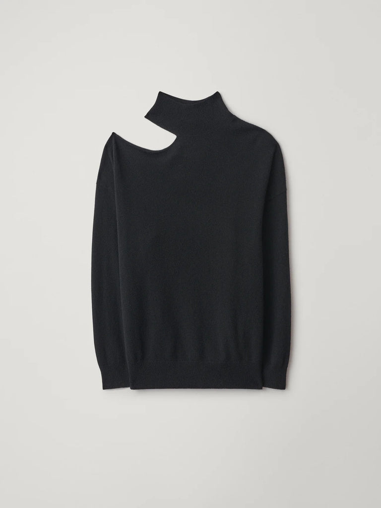 A novel construction, the Alvia sweater is crafted in mid-weight cashmere for transeasonal wear. The relaxed fit, hip-length silhouette features a high neck and ribbed trims throughout.