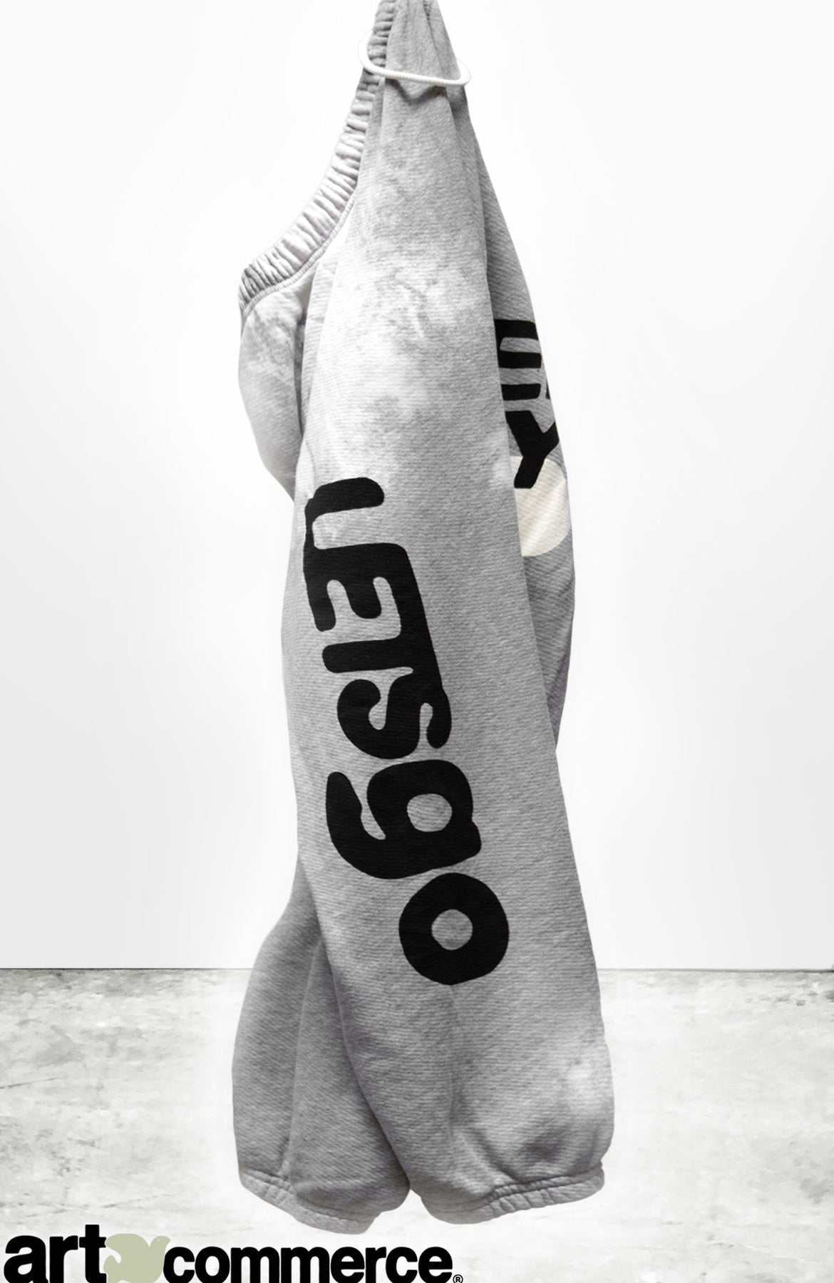 Unisex FREECITYLETSGO OG BLEACHOUT sweatpant with custom partial hand-bleach process (highs and lows) classic black “FREECITYLARGE” print with cream "FREECITYDOVE," and black "LETSGO" print down the right leg. Covered elastic waist with pull drawstring.