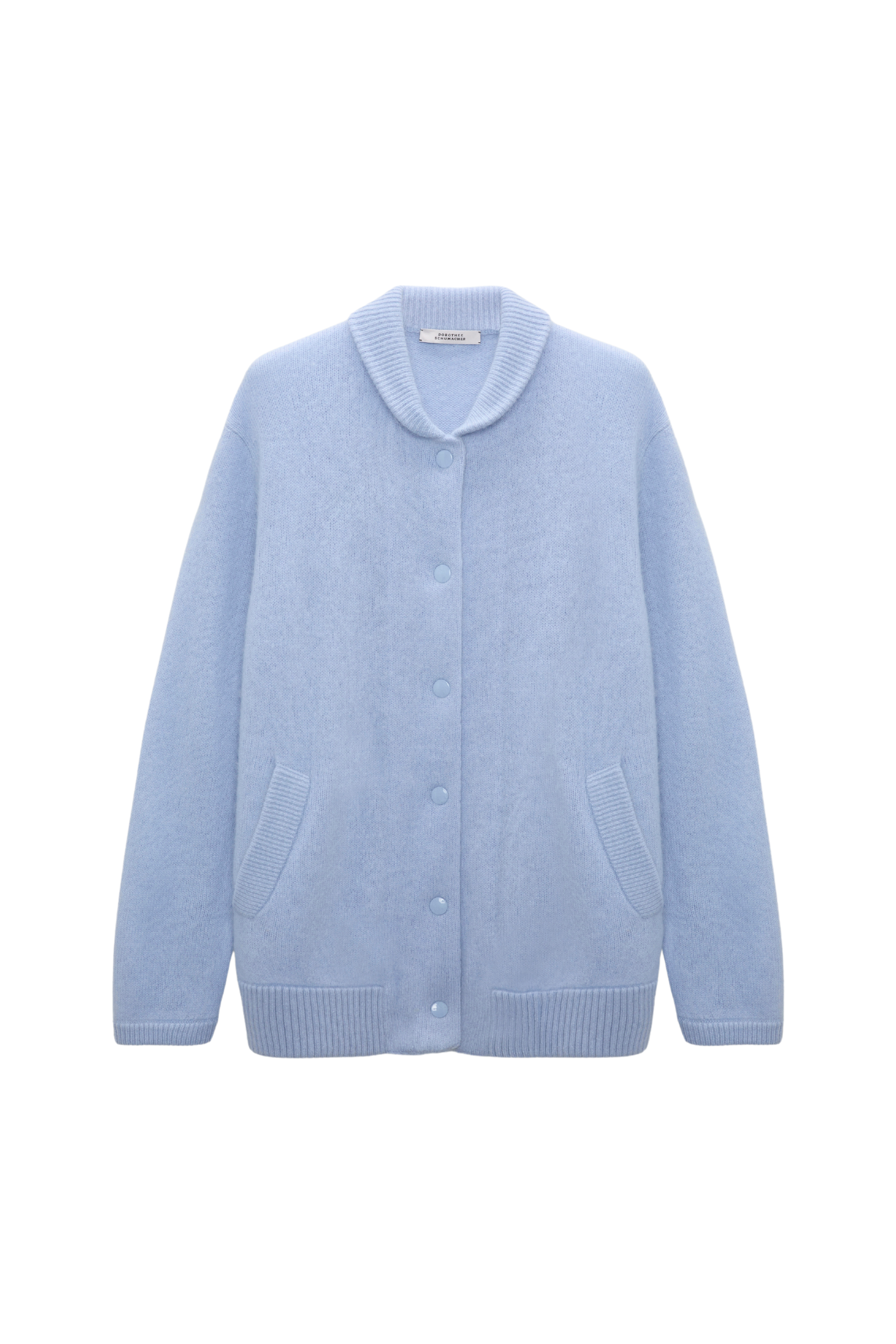 Knit in soft Merino-cashmere with a fluffy wash, the hybrid style is inspired by the iconic bomber jacket. The jacket has a relaxed fit, front pockets and ribbed knit trim.