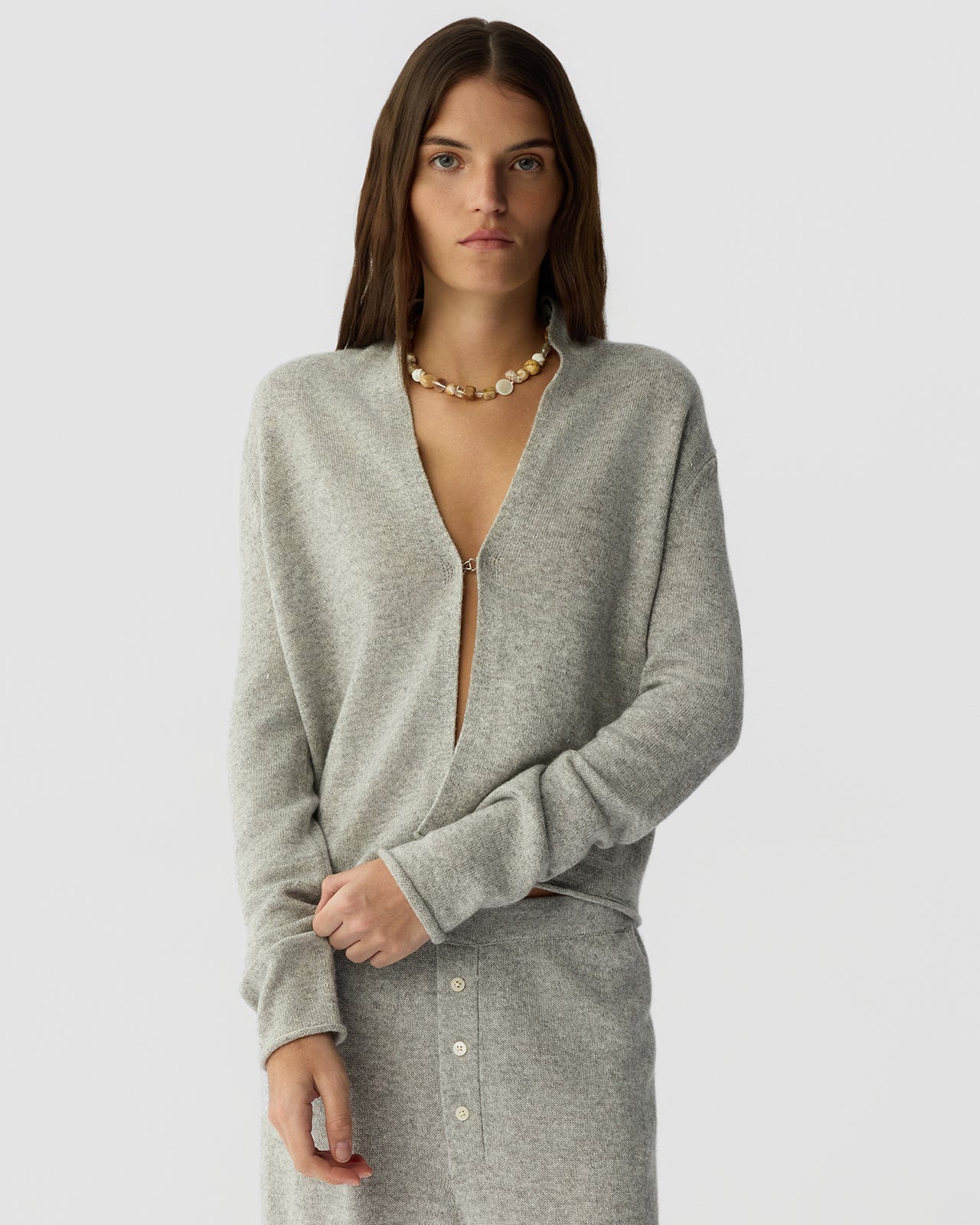 ICONIC STEALTH CARDIGAN IS REIMAGINED IN A LIGHT-WEIGHT CASHMERE–LINEN BLEND FOR WARMER DAYS. DESIGNED WITH A SHAWL COLLAR AND DISCREET HOOK-AND-EYE CLOSURE, THIS WOMEN’S CARDIGAN LAYERS EFFORTLESSLY OR WEARS BEAUTIFULLY ON ITS OWN, TRANSITIONING EASILY FROM DAYTIME TO EVENING.