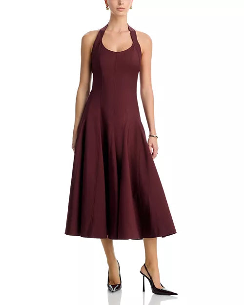 Slip into effortless elegance with the Melissa Halter Neck Midi Dress. This sleek silhouette features a flattering halter neckline secured with a hook closure, paired with a breezy sleeveless cut perfect for warm-weather styling.