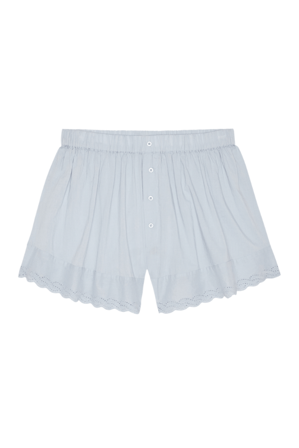 This is the sleep short you've been dreaming of. Crafted from supersoft and lightweight cotton voile fabric, this short is adorned with Victorian-inspired eyelet lace trim and finished with a delicate scalloping at the edges. The sleep short has a gathered waistband and swingy, easy leg openings. Pair them back to the matching The Eyelet Tank. for the head-to-toe look we love.