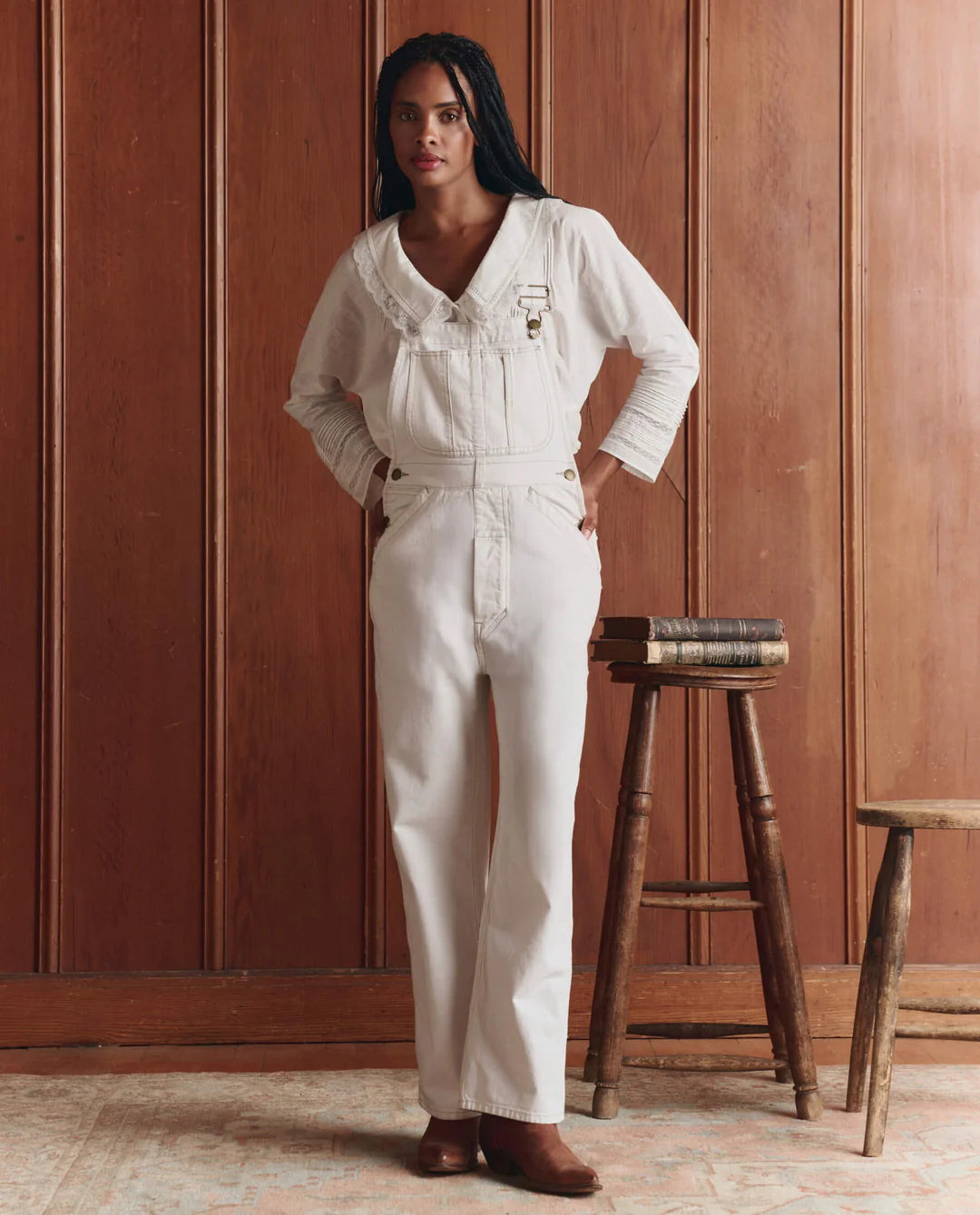 Inspired by 1940s workwear, The Union Slim Overall offers a refined take on classic denim utility. Contrast triple-needle stitching and bar tacks reinforce the vintage feel, finished with antique metal hardware—rivets, tack buttons, and hooks—that nod to original collected pieces. Rounded chest and back pockets complete the design, balancing function with an easy, considered shape. Crafted in a vintage-tinged Washed White, the silhouette is slimmer through the body while still honoring authentic details throughout.