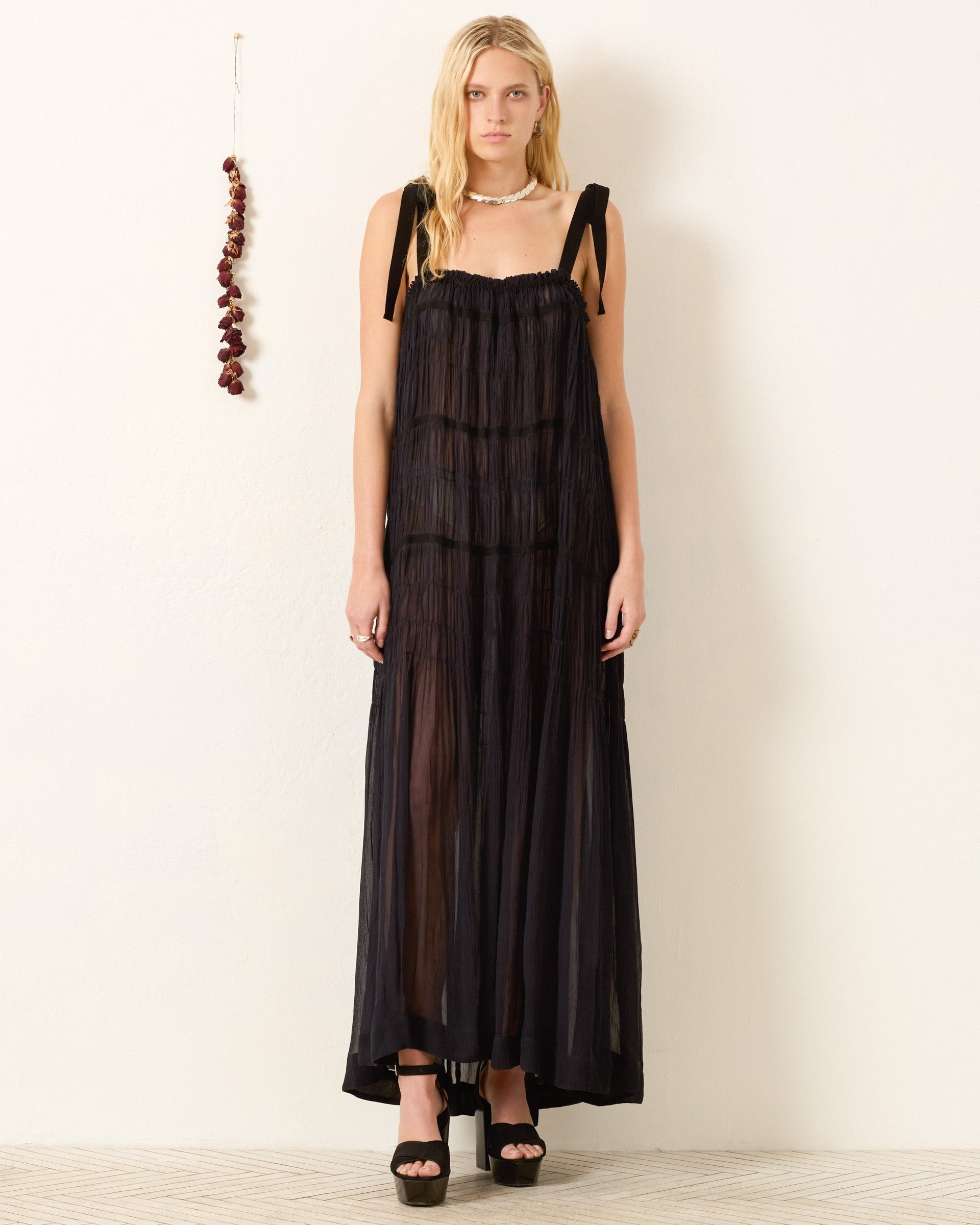 Emrys Shadow Chiffon Dress - XS is backordered and will ship as soon as it is back in stock.